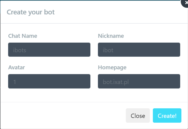 Add your chat name on the top left and the appearance Information of your bot and press the “Create!” button.